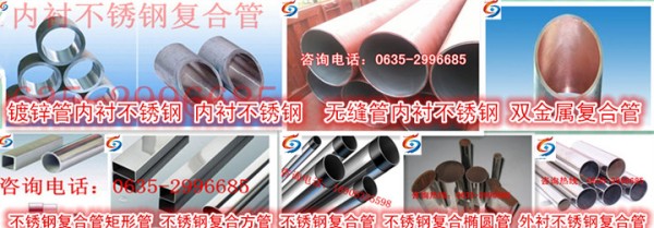 山東飛龍不銹鋼復合管有限公司是制造、銷售不銹鋼管;不銹鋼內、外復合管及復合管制品;鋼材、建材的加工。不銹鋼外覆復合管具有外表美觀、防腐蝕、強度高、價廉的特點,可廣泛應用于市政工程的護欄,公路交通設施和路橋欄桿,網架鋼構,場館設施工程,高檔樓梯制造,路燈桿、旗桿,廣告牌架,車船的扶手、行李架;民用的窗簾桿、晾衣桿及家俱,醫療健身器械,自行車、摩托車把、保險杠,包裝、紡織機械配件等領域。規格有管徑Ф12.7-Ф219mm。內襯不銹鋼復合管是在鋼管內復合不銹鋼層,它具有機械強度高、抗沖擊性強、耐高溫、耐腐蝕、衛生等級高、不結垢、流體阻力小、連接方式與鋼管相同,此復合管應用范圍廣,可以作為高溫熱水、熱蒸汽、高壓力管道。是一種安全性能高、使用壽命長、連接方式簡單、綜合性能很佳的復合管材;又經營各種鐵藝圍欄,石材欄桿,建材等項目; 我公司實力雄厚,信譽度高,以誠信為本,愿與各界朋友合作,竭誠為您服務,歡迎客戶光臨指導!